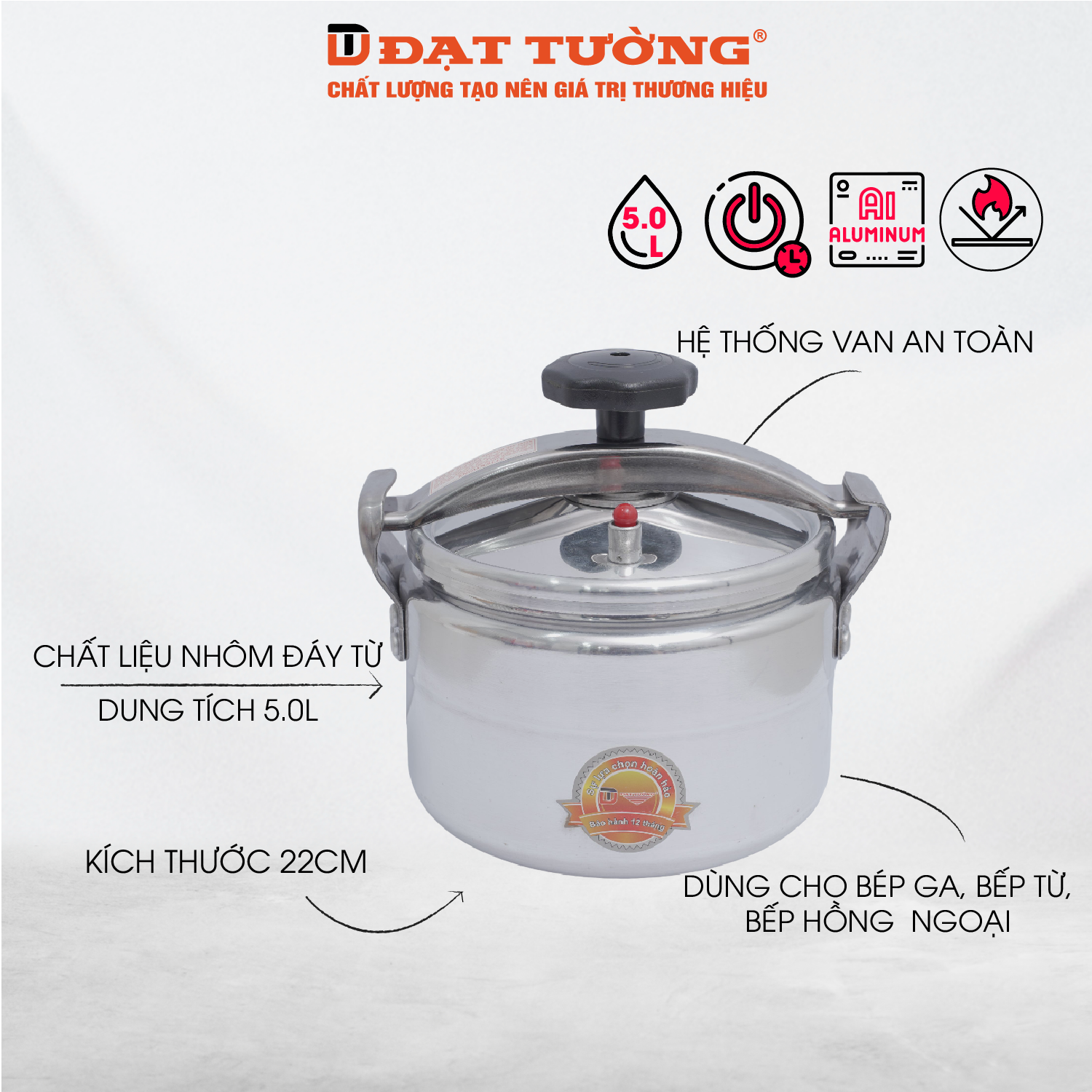 - Kích thước lòng nồi: 22cm.
