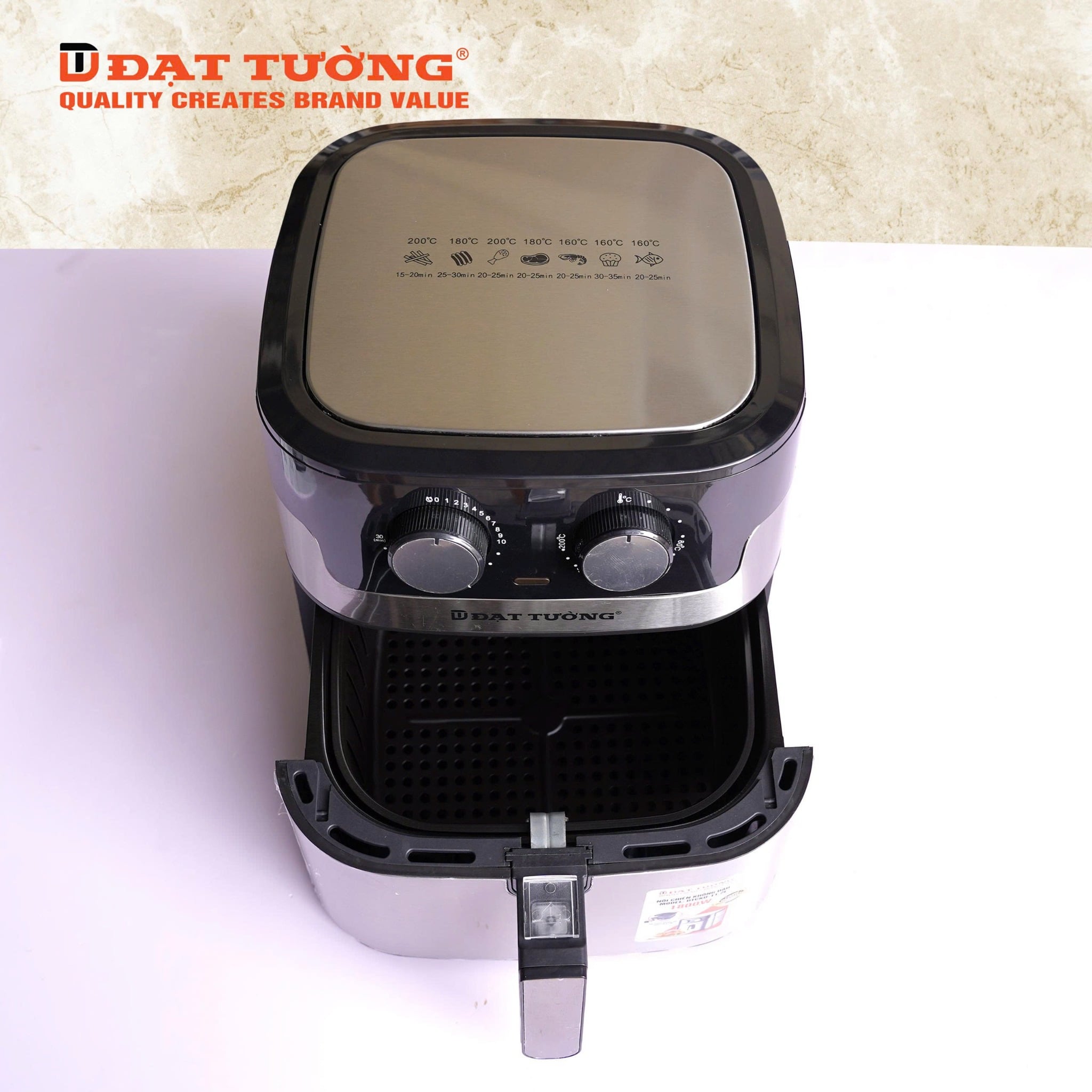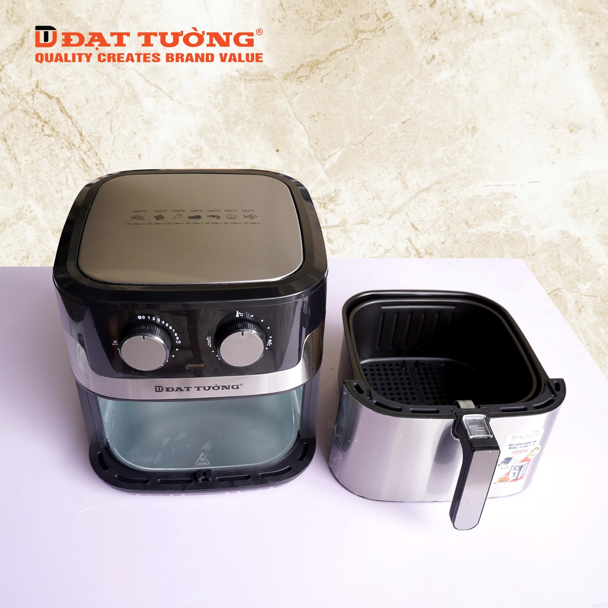 Quạt tuần hoàn nhiệt mạnh mẽ, giúp món ăn chín đều không cần lật Phụ kiện tháo rời - Dễ vệ sinh, an toàn sử dụng